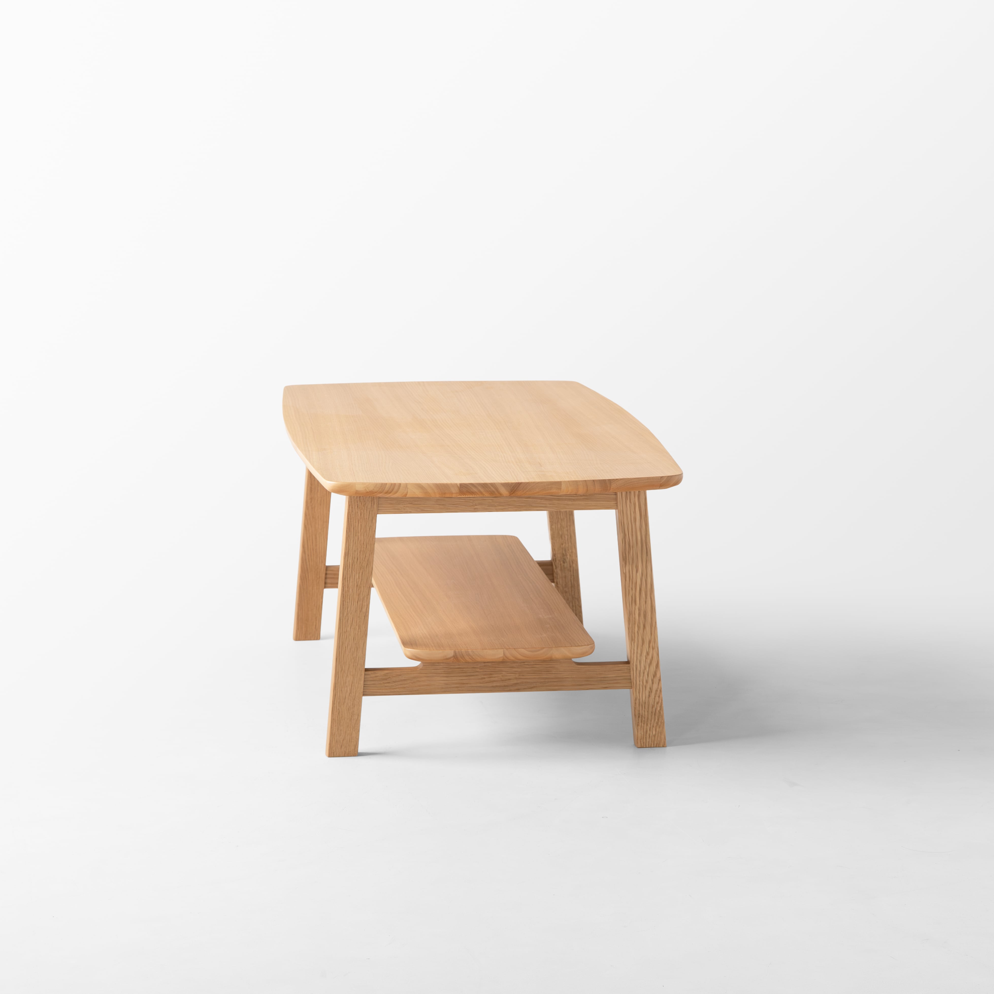 四角い形状の天板にゆるく大きなアールをつけることで柔らかな印象を持たせました。